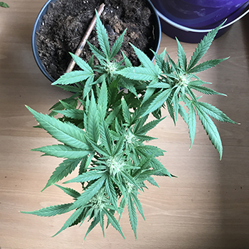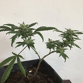 De stekken zijn uitgegroeid tot mooie bloeiende wietplanten zoals je ziet. Ze zijn dan misschien niet zo groot als de dames in Tuinesië maar bloeien wel voorspoedig. De beste twee van deze vier planten zullen na de oogst terug in de groeifase worden gezet. Zo hebben we als alles goed gaat, van de beste planten alvast een pracht exemplaar om volgend jaar mee te starten. En ge-reveged dan ook nog een keer!