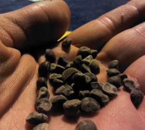 Om het misselijke gevoel te voorkomen kun je ook een soort thee van de zaden maken. Hiervoor moet je de zaden eerst goed malen in een koffiemolen of iets dergelijks. Dan laat je de vermalen zaden 24 uur weken in gedistilleerd water en daarna filteren met een koffiefilter. Drink het aftreksel hierna heel langzaam (in 20 tot 40 minuten) op en neem na iedere slok een paar slokken schoon water om misselijkheid te voorkomen.