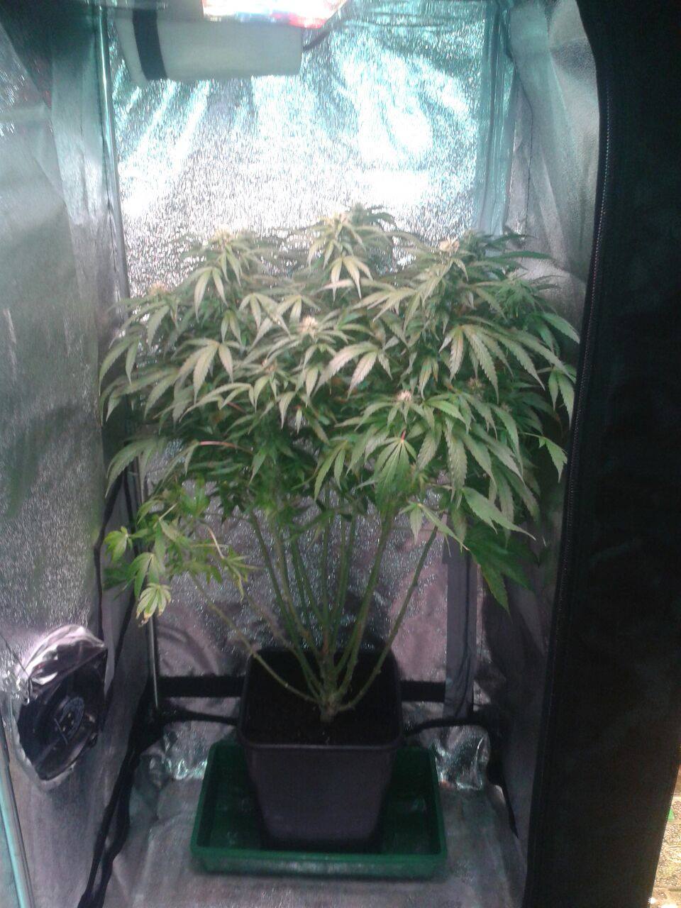 Ik zie deze plant ook als een echt Jack Herer fenotype, de originele Jack was ook een echte sativa. De voorste plant krijgt deze week nog water met voeding, ongeveer 1,5 liter per dag. Vanaf volgend weekend krijgt ze dan alleen nog maar schoon water en laat ik haar mooi afrijpen. De achterste plant moet nog wel een paar weekjes bloeien en die krijgt de komende tijd dus water met bloeivoeding en ook wat PK 13/14.