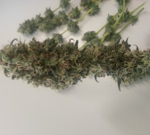 The Ultimate is een mooie soort om te oogsten. Ze produceert weinig blad en veel top waardoor het knippen heel snel gaat. Doordat het meeste blad bij mijn plant al was gaan hangen en vergeeld was, kon ik ze er met de hand gemakkelijk aftrekken, wat het oogsten helemaal gemakkelijk maakte.
