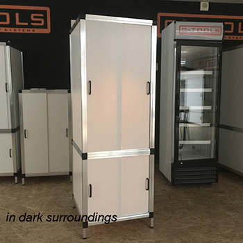 Op zich schijnen de platen maar weinig licht door en hoef je niet bang te zijn dat je planten er last van hebben. Alleen wanneer de kweeklamp in de kast brandt en het buiten de kast donker is, zie je er wat van.