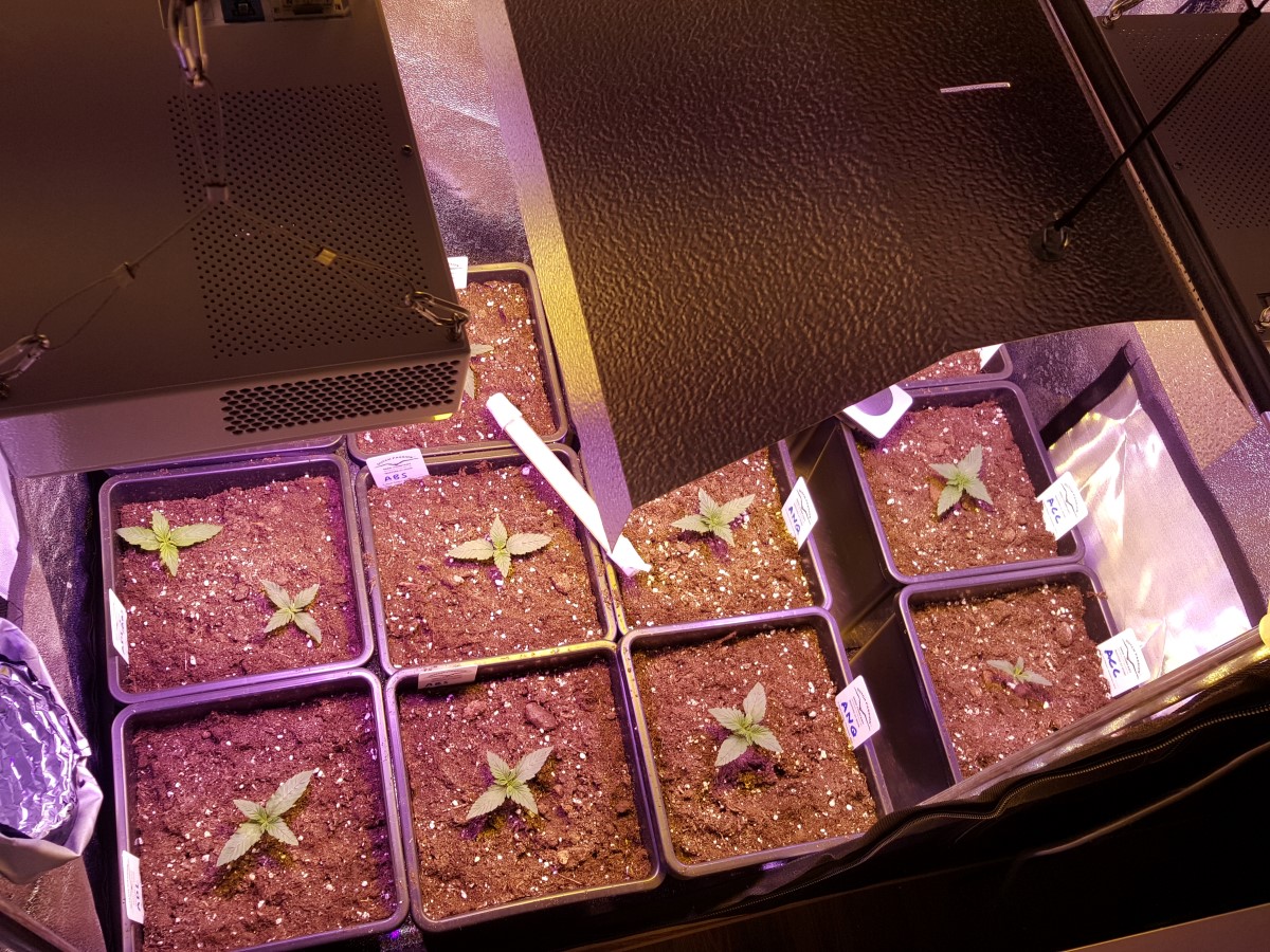Hallo RollingStoners, hier een eerste extra update van mijn LED-HPS-Autoflower testkweek. Ik heb inmiddels de nodige LED-ervaring en een ding wat mij steeds opvalt, is dat LED kweeklampen wel voldoende licht geven, maar dat ze wat aan stralingswarmte missen. Dit is natuurlijk met name in de zomermaanden wel een voordeel, maar zorgt er ook voor dat de groei van wietplanten anders verloopt. De bladeren verdampen minder vocht waardoor er ook minder water, en dus voeding opgezogen wordt. Om dit te compenseren heb ik tussen mijn twee CrazyLEDs deze keer een kleine HPS kweeklamp van 150 Watt gehangen. Wat verder ook nieuw is, zijn natuurlijk de vier autoflower wietsoorten. Nieuw voor mij omdat ik nog niet eerder binnen met autoflowers in de weer ben geweest, maar voor jullie ook nieuw omdat het hier om spiksplinternieuwe soorten gaat. Ik ben zeer benieuwd naar deze Amerikaanse soorten!