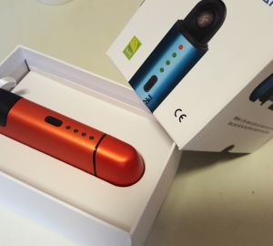 Dampen doe je dus met de dop op de verdamper, de Prima heeft vier temperatuurinstellingen; 176°C ~ 182°C, 185°C ~ 190°C, 193°C ~ 198°C en 198°C ~ 205°C. Vapir heeft een rubberen beschermdop bijgeleverd omdat de dop van de Prima wat warm kan worden, maar dat had wat mij betreft echt niet gehoeven. De verdamper is tijdens het gebruik heel goed vast te houden en te heet wordt hij niet, maar goed het zit bij de Prima inbegrepen. Er zit slechts 1 knop op de Prima en vier LED’s om de ingestelde temperatuur mee aan te geven. Om de verdamper in te schakelen moet je de knop even drie seconden ingedrukt houden en door daarna nog eens op de knop te drukken kun je een stand omhoog in temperatuur. Het werkt heel gemakkelijk eigenlijk en de LED’s zijn duidelijk.