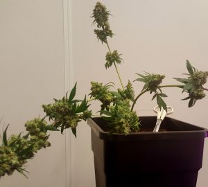 Ik heb ervoor gekozen om de planten niet helemaal schoon te knippen, maar slechts te ontdoen van de grote schutbladeren. De rest van de blaadjes knip ik pas na het drogen van de toppen af. Door ze tijdens het drogen aan de plant te laten zorgen ze ervoor dat de wiet lekker langzaam droogt, wat uiteindelijk aan de kwaliteit ervan bijdraagt. Het knippen kan hierdoor wat lastiger worden, maar hoeft niet. Als je er wat handigheid in krijgt, kun je de uitgedroogde blaadjes vrij gemakkelijk van de toppen afbreken na het drogen.