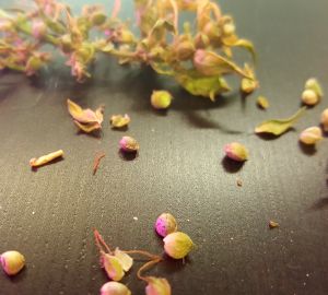 Ik kan mezelf wel voor mijn kop slaan dat ik het niet eerder gezien had, maar ook bij het oogsten waren de mannelijke bloemen nauwelijks op te merken. En aangezien ze steeds achteraan stonden heb ik de zaden ook niet eerder opgemerkt maar de Compassions zitten er vol mee! Helaas zijn deze zaden nutteloos aangezien er een heel grote kans is dat er alleen nog maar meer herma’s uit voortkomen. En aangezien de toppen ook niet erg dik zijn heb ik besloten om ook niet veel moeite te doen bij het knippen. Ik heb ze zo ondersteboven terug in de kast gehangen en zal ze verwerken tot CBD ice hasj of hasjolie. Hoe het in godsnaam mogelijk is geweest dat de Kush planten niet door de Compassions bevrucht zijn geraakt is me een raadsel maar het is echt niet gebeurd, anders zou de Kush ook geen banaantjes hebben aangemaakt.