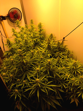 Nu de rest weer lekker groen en aan het bloeien zijn kan ik me gaan voorbereiden op het moment dat ze geoogst gaan worden. Omdat ik nu al zie dat ze alle vijf in verschillende stadia zijn en dus ook niet tegelijk klaar zullen zijn, gaat mijn plan om in de kweekkast zelf te drogen niet door. Drogen moet immers in het donker. En om niet de hele buurt te laten mee genieten van die heerlijke wietlucht zal ik dus een aparte droogruimte moeten creëren met een kleine koolstoffilter. Daar ga ik mij de komende week eens mee bezig houden.