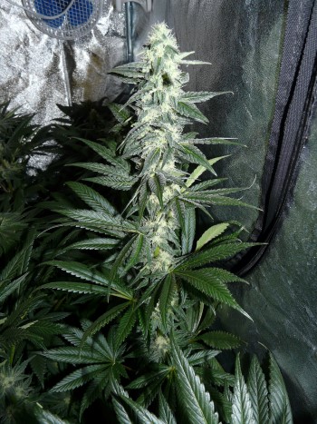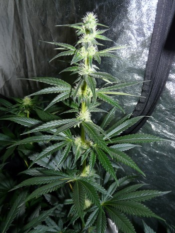 Een eerste voorzichtige top met zelfs al wat trichomen.