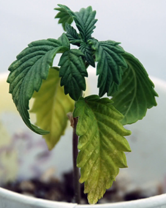 Wanneer een wietplant te weinig voeding krijgt, zie je dat meestal snel aan de vergeelde bladeren. Foto: fukume, Shutterstock.