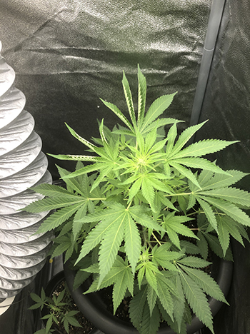 Hoi Thomas, mooie wietplant heb je. Ik zie wat je bedoelt met de dicht krullende bladeren. Sommige van de bovenste bladvingers zijn bijna helemaal dichtgeklapt. Er is een naam voor dit fenomeen en in het Engels noemen ze het dan ook tacoing oftewel tacoën. En hoewel taco eigenlijk helemaal geen werkwoord is, snap je misschien wel wat ze ermee bedoelen. De dichtgekrulde bladeren hebben namelijk duidelijk de vorm van een taco, die ook over de lengte dichtgevouwen is.