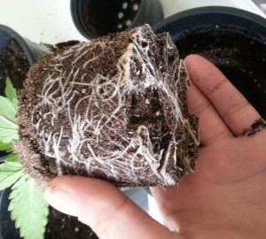 Verpotten is eigenlijk een vorm van training voor je wortels. In iedere pot ontwikkelt de plant een mooie worteldichtheid en als je op tijd verpot hebben de wortels steeds genoeg ruimte om verder te groeien in een nieuwe pot. Uiteindelijk heeft je wietplant een mooie grote pot die van binnen en aan de buitenkant vol zit met gezonde wortels.
