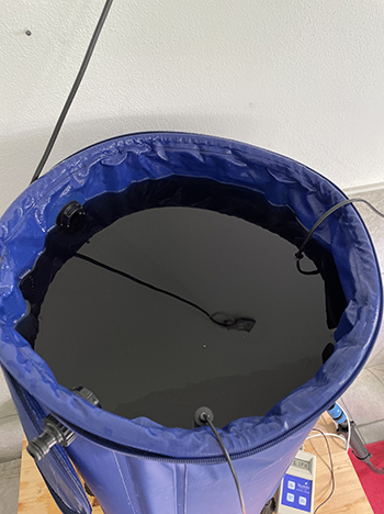 Ik geef de wietplanten water met Bio-Nova voeding met een pH-waarde van 6,1. Ik meng het water met de voeding in een 100-liter Flexi-Tank waterreservoir dat bij de Autopotten hoort die ik gebruik. Hierdoor hoef ik de planten niet een voor een water te geven, maar krijgen ze dat automatisch uit het reservoir. Het is superhandig, en bespaart me een hoop tijd.