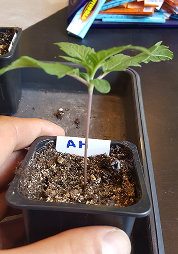 Zoals ik vorige week al aangaf strekken de twee sativa’s, de Atomical Haze planten, wat meer als de Durga Mata II CBD zaailingen. Dit is puur genetisch en heeft niets met een gebrek aan licht te maken. Alle vier de planten blijven ook na deze tweede week namelijk netjes gedrongen. en hebben een mooie korte internode-structuur. Ik bedoel daarmee dat de vertakkingen, wat ook wel nodes genoemd worden dicht op elkaar groeien. Dit wil ik ook graag in de RollingStoned kweekkast omdat die natuurlijk maar een meter hoog is. Als mijn planten enorm zouden gaan strekken kom ik straks in de problemen met de hoogte.
