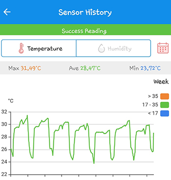 Het klimaat in de CNNBS G-Kit XL is nog steeds aangenaam voor de wietplanten. De gemiddelde temperatuur was met 28,47 graden Celsius bijna gelijk aan de temperatuur van vorige week. De gemiddelde luchtvochtigheid van 48.76% is wel licht gestegen.