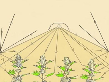 Met mat witte wanden bereikt minder licht je planten dan met spiegelende wanden. Bij een test met lumenmeters in een ruimte met spiegelende wanden bleek de lichtsterkte bij de buitenste planten toe te nemen wanneer de lamp hoger kwam te hangen! Eerst hing de reflector en lamp zo laag boven de planten dat er nauwelijks licht op de spiegelwanden viel, daardoor was de lichtsterkte recht onder de lamp erg hoog en aan de buitenkanten heel laag.