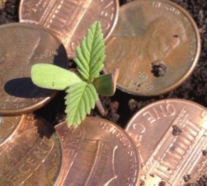 Een zaadje plaats je dus met het worteltje naar beneden in de grond. Een beetje domme fout, maar het gebeurt echt. Naarmate het worteltje zich verder in de grond boort, splijt het zaadje verder open en groeit het omhoog. Eruit komen de lobblaadjes. Dit zijn de allereerste blaadjes van je wietplant, ze zijn rond en hebben geen gekartelde rand. Deze lob blaadjes zijn de eerste voedingsfabriekjes van het plantje en zetten het eerste licht om in chlorofyl waarmee het plantje verder kan ontwikkelen.