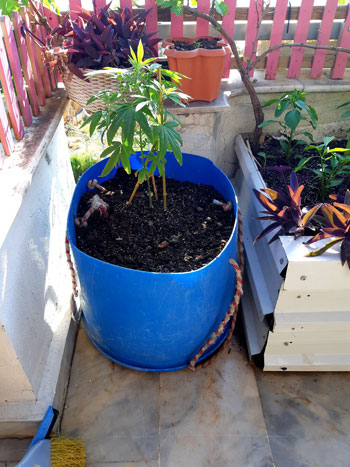Na twee weken in de 100-literpotten bemest ik alle dames met een meststof die ik van mijn vriend kreeg. Deze is niet speciaal voor wiet maar het zou de groei bevorderen bij groene planten zoals tomaten en paprika. Proberen maar dus; ik kan hier namelijk geen speciale groeistoffen krijgen zoals in Nederland. Ik heb dus geen wortelstimulator of andere extra groeistoffen of boosters.