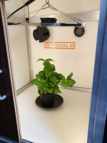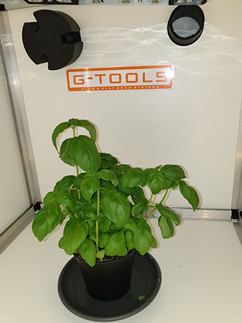 Ik denk dat het heeft gelegen aan de omschakeling van de CMH verlichting naar LED. Om zeker te weten dat het niet aan de Hans Panel ligt, test ik twee ideeën uit. Ten eerste gebruik ik een vervangende Hans Panel; deze kon ik even lenen voor de test. Ten tweede test ik een plantje dat erg lichtgevoelig is: een lekker basilicum plantje van de supermarkt.