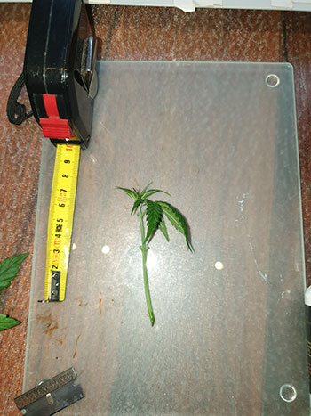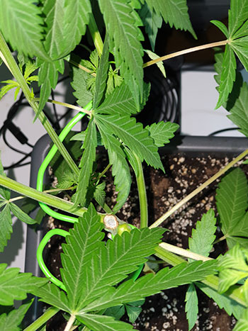 De vier wietplanten in de CNNBS G-Kit XL waren veranderd in kleine struikjes, en hadden niet de vorm die ik graag wil. Ik ben daarom van start gegaan met het dieven van de onderste vier takken. Deze takken groeien te laag om goede toppen te leveren, en zijn dus ‘dieven’ van de sapstroom. Hier komt dus ook het woord ‘dieven’ vandaan. Bijkomende voordelen van het dieven zijn dat je makkelijker water kunt geven, en het de luchtcirculatie ten goede komt.