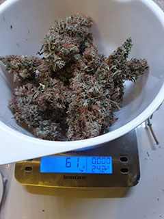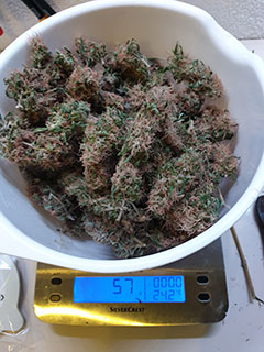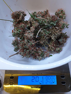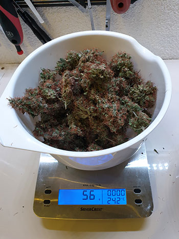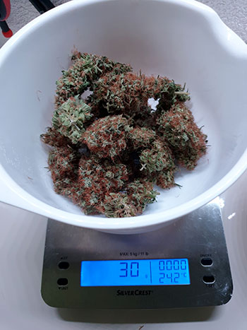 Toen ik er vorige week tijdens het oogsten achterkwam dat een aantal toppen door botrytis waren aangetast, moest ik natuurlijk wel even slikken. Toch ben ik erg blij met het uiteindelijke oogstgewicht. Want na het verwijderen van alle rotte toppen, bleken de Morning Glory, Critical Orange Punch en de White Choco Haze bij elkaar toch 273 gram lekkere wiet te hebben opgeleverd. Dat is bijna een gram per Watt, en een hele mooie score, gezien de toprot.