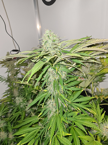 De 315 Watt CMH kweeklamp heb ik deze week iets omlaag gebracht om een afstand van 25 centimeter te kunnen aanhouden voor de hoogste toppen. De dames zijn ook wat aan het inzakken door het gewicht van de toppen.