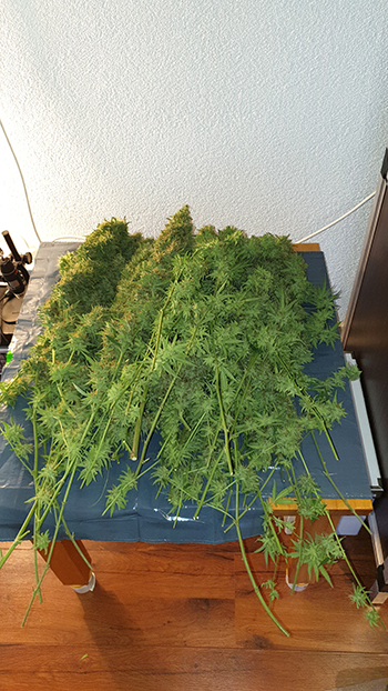 Nu de wiet droog is kan ik de toppen van hun takken ontdoen, de toppen sorteren en de wiet wegen. Zoals ik vorige week vertelde ben ik van plan om van een deel van de oogst, wietolie te maken. Hiervoor maak ik gebruik van de wat minder mooie toppen en het knipafval.