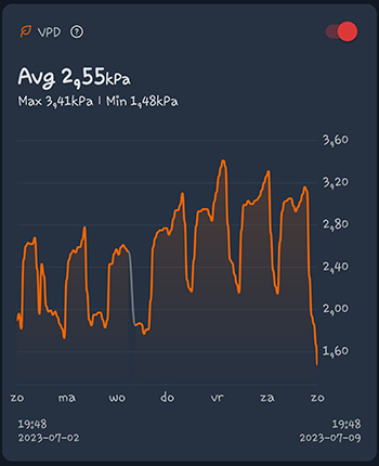 Na het schrijven van mijn vorige verslag hebben de mensen van Switchbot besloten om een update door te voeren. Na deze update is het mogelijk om al hun sensoren met de VPD gegevens uit te lezen. Dit is natuurlijk super van ze, alleen jammer dat ik net drie nieuwe heb besteld in verband met die functie. Maar goed, laten we het positief bekijken. Ik heb nu twee meetpunten in de kast om mee aan de slag te gaan.