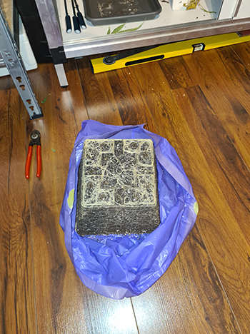Nadat ik de kamer weer schoongemaakt had, was het tijd om ook de G-kit XL eens goed schoon te maken. Ik had deze kweekronde erg veel voedingswater gemorst met de nodige vlekken tot gevolg. Gelukkig zijn de CNNBS kweekkasten waterbestendig.