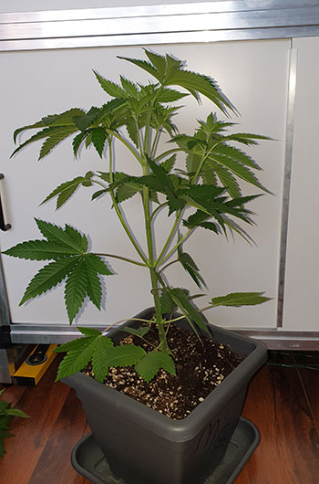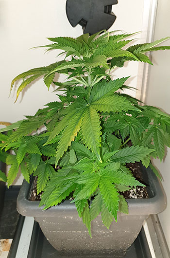 Ik heb de binnenzon na het dieven niet verhoogd. De CMH lamp hangt nu zo’n 10 centimeter boven de hoogste planten. Ook deze week lijkt dat nog geen negatief effect op ze te hebben. Ik heb vandaag het lichtschema omgezet naar 12/12. Met het water geven zit ik op 950 milliliter per dag per plant. Zo ook na het dieven en ik denk dat het te maken heeft met de lamp die erg laag hangt, en de hoge temperatuur daardoor.