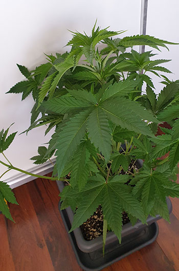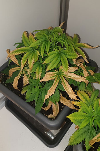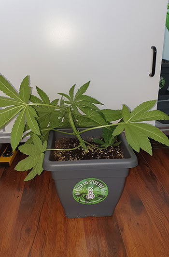 Dit keer is het wietplantje helaas levensgevaarlijk gewond, en ik schreeuw door het huis, “schat! bel Dokter Groen, wie weet is er nog wat aan te doen!” Mijn vrouw komt de kamer binnengereden. Wat er aan de hand? Nou dit!