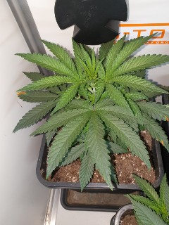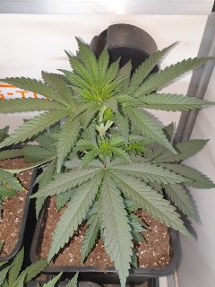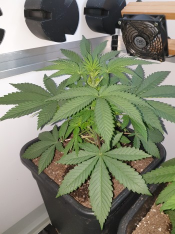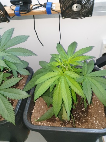 De dames zijn mooi donkergroen van kleur en hebben een lengte van 22 centimeter. Op de Sneeze rechts achterin na. Die dacht, “laat ik eens de lucht in gaan”. Deze heeft dan ook een lengte van 29 centimeter. De dames drinken dagelijks een kleine 250 milliliter water met voeding van Plagron. Ook hier is de verlichting omgegaan van 18/6 naar 12/12. De G-Bars LED heb ik op een hoogte van 23 centimeter boven de dames hangen. Ik gebruik zoals je weet de oude 150 Watt en niet-dimbare versie van deze LED; tegenwoordig is het een dimbare 170 Watt versie.