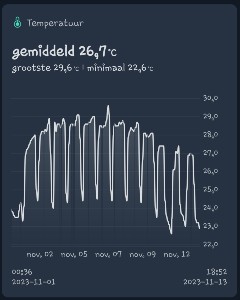 Zoals je weet heb ik in de CNNBS G-Kit XL twee sensors geplaatst, om eens te kijken wat nou het verschil is in temperatuur en luchtvochtigheid, boven en onder in de kast. De gemiddelde temperatuur onder was 29,1 graden Celsius. De 315 Watt CMH lamp hangt op het moment namelijk nog erg laag, en vlak bij de onderste sensor.