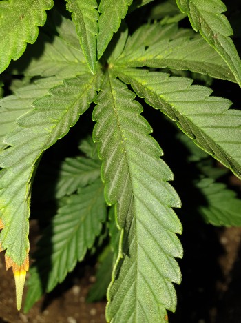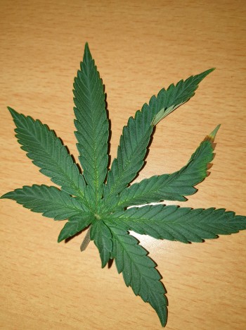 Afgelopen maandag kwam ik een kijkje nemen bij de Sneeze dames in de CNNBS G-Kit toen ik daar een raar blad zag. Deze had een andere kleur dan de rest en op het eerste gezicht zag ik lichte groene vlekjes en iets wits. Hmmmm wat zal dat zijn? Het blad had ook een rare vorm maar er zat het blad niets in de weg.
