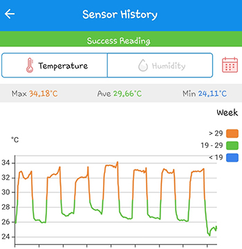 De gemiddelde temperatuur is met 29,66 graden Celsius aardig gestegen ten opzichte van vorige week. De luchtvochtigheid is met 47,33 procent gemiddeld, opnieuw gedaald. Met een nieuw dieptepunt van 33,27 procent. De afzuiger staat nu continue aan. Op de laatste dag is in de grafiek is goed te zien dat de hittegolf ten einde liep. Doordat het zo heet was is het me niet gelukt om de voorbereidingen te treffen voor de nieuwe ronde, dus dat doe ik volgende week.