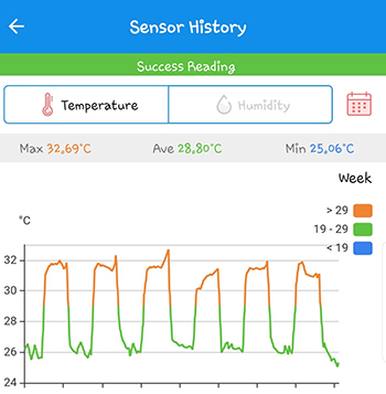 De gemiddelde temperatuur was 28,80 graden Celsius en dit is deels het gevolg van minder vocht in de lucht. De gemiddelde luchtvochtigheid is met 52.74 procent dalende.