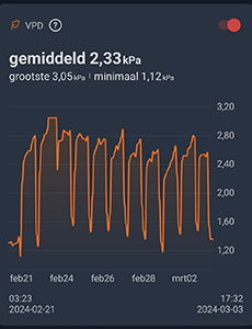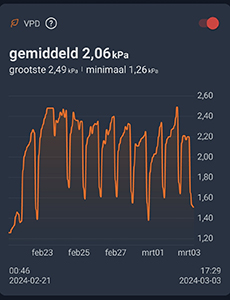 Bij de Sneeze planten heb ik natuurlijk ook het klimaat gemeten. De gemiddelde temperatuur was hier de afgelopen twee weken 26 graden Celsius. De gemiddelde luchtvochtigheid in diezelfde periode was 40,2 procent. De gemiddelde VPD in deze twee weken was 2.03 kPa.