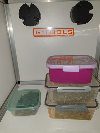In de kleine kweekkast liggen vier vershoudbakjes gevuld met de toppen met zaadjes. Wat kunnen we daar nou eens mee doen? Ik had eerst het idee om er THC-olie van te maken maar als je dat op zak hebt en je wordt aangehouden, dan schijnt oom agent daar niet vrolijk van te worden. Een spacecake was ook geen optie; die komt me ook mijn keel uit na de derde dag, en dan moet je nog een halve cake.