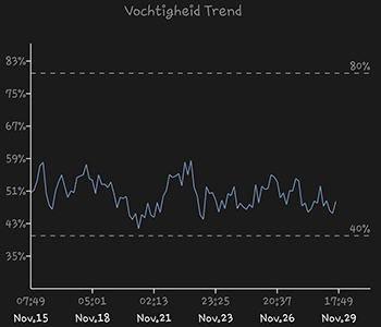 De bewatering van de zes dames loopt nu gelijk. Ik heb de hoeveelheden wel naar beneden moeten aanpassen. Na het plaatsen van de sensoren kwam ik er namelijk achter dat ik ze stelselmatig iets te veel water aan het geven was. Ik ben nu van 1 liter water met voeding per dag naar 800 milliliter (per dag per plant) gegaan.