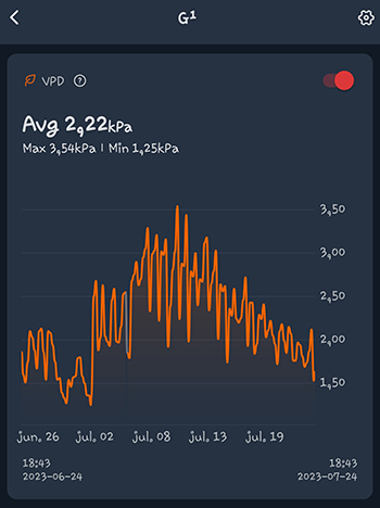 We zitten namelijk nog in de groeifase, ondanks dat ik beide G-Kits afgelopen donderdag op het 12/12 lichtschema (12 uur aan en 12 uur uit) heb gezet. Om de waarden wat te laten dalen ga ik de komende twee weken, zolang de dames nog geen bloemen hebben, de luchtvochtigheid wat verhogen door meer water te geven. Tevens wil ik kijken of ik wat extra vocht kan verdampen in de G-Kit, alleen ben ik er nog niet uit hoe ik dat ga doen. Maar als het niet te gek heet wordt moet dat de waarden naar het juiste niveau brengen.