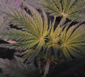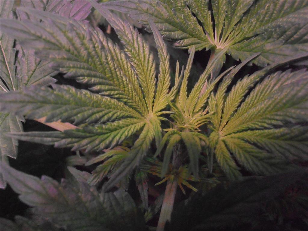 Hoe het kan weet ik niet maar ik heb er blad bij met 10 vingers. Normaal gesproken is het altijd een oneven aantal: 3, 5, 7, 9, 11, 13… Nu staat er gewoon 1 kleintje tussenin. Heel vreemd, maar wel lekker om te zien. Natuurlijk kijken we dan naar het einde van deze 2e week bloei en stuiten we zoals niet anders verwacht op een blaadje meer. Terwijl ik nog zo zei: “ik reken er niet op”. 11 Vingers dus. Jawel!