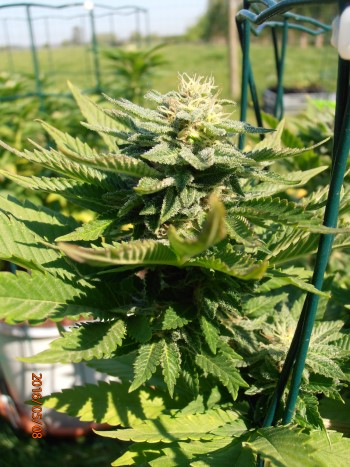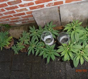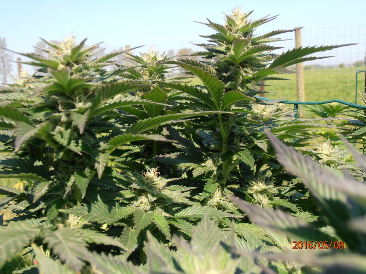 De oudste planten worden nu bijna 7 weken verduisterd. Omdat het klimaat nog niet ideaal is geweest, zullen ze nog 2 tot 3 weken moeten staan. De toppen beginnen voller te worden en de witte trichomen (harskristallen) nemen nog steeds toe. De zoete geur van de planten wordt zo dus steeds sterker. Verhoudingsgewijs zit er redelijk wat blad tussen de toppen, oorzaak daarvan is vermoedelijk de kou. Op de foto’s zal je misschien merken dat er hier en daar pluisjes in de toppen hangen, dit is afkomstig van rondvliegende pollen.
