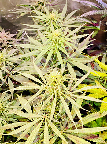 Van elk van de vijf overgebleven Jack Herer dames heb ik dus gelukkig tenminste één geslaagde kloon, en van sommigen zelfs twee. Voorlopig staat de keuze daarom nog volledig vrij, alhoewel een blik in de kweekruimte al voorzichtig wat voorkeuren creëert. Daar staan de vijf dames (vergezeld van wat gewaardeerde verstekelingen) inmiddels in bloei, en zijn dus al wat kenmerken en karaktertrekken zichtbaar. Nu al dienen zich door vroegtijdige uitbundige vorming van trichomen, onmiskenbare uitblinkers aan die niet te negeren zijn. Dat, tezamen met de eveneens uitmuntende algehele uitstraling van enkele moederplanten in spé, zou er bijna voor zorgen dat ik nu al enkele stekken overboord gooi.