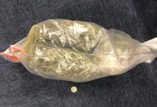 Let ook op het geldmuntje dat de politie erbij heeft gelegd om de grootte van de zak wiet beter in te kunnen schatten…