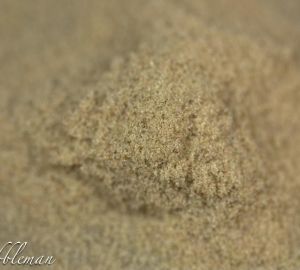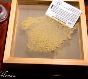 In de tweede stap wordt alle kief uit stap een door een 107 micron gaas gezeefd. Het resultaat zie je rechts. Een fijn poeder van trichomen en losse stammetjes die in de derde stap van elkaar gescheiden dienen te worden.