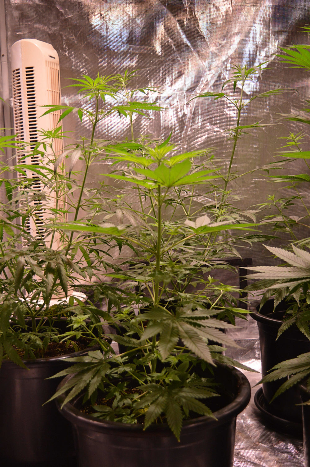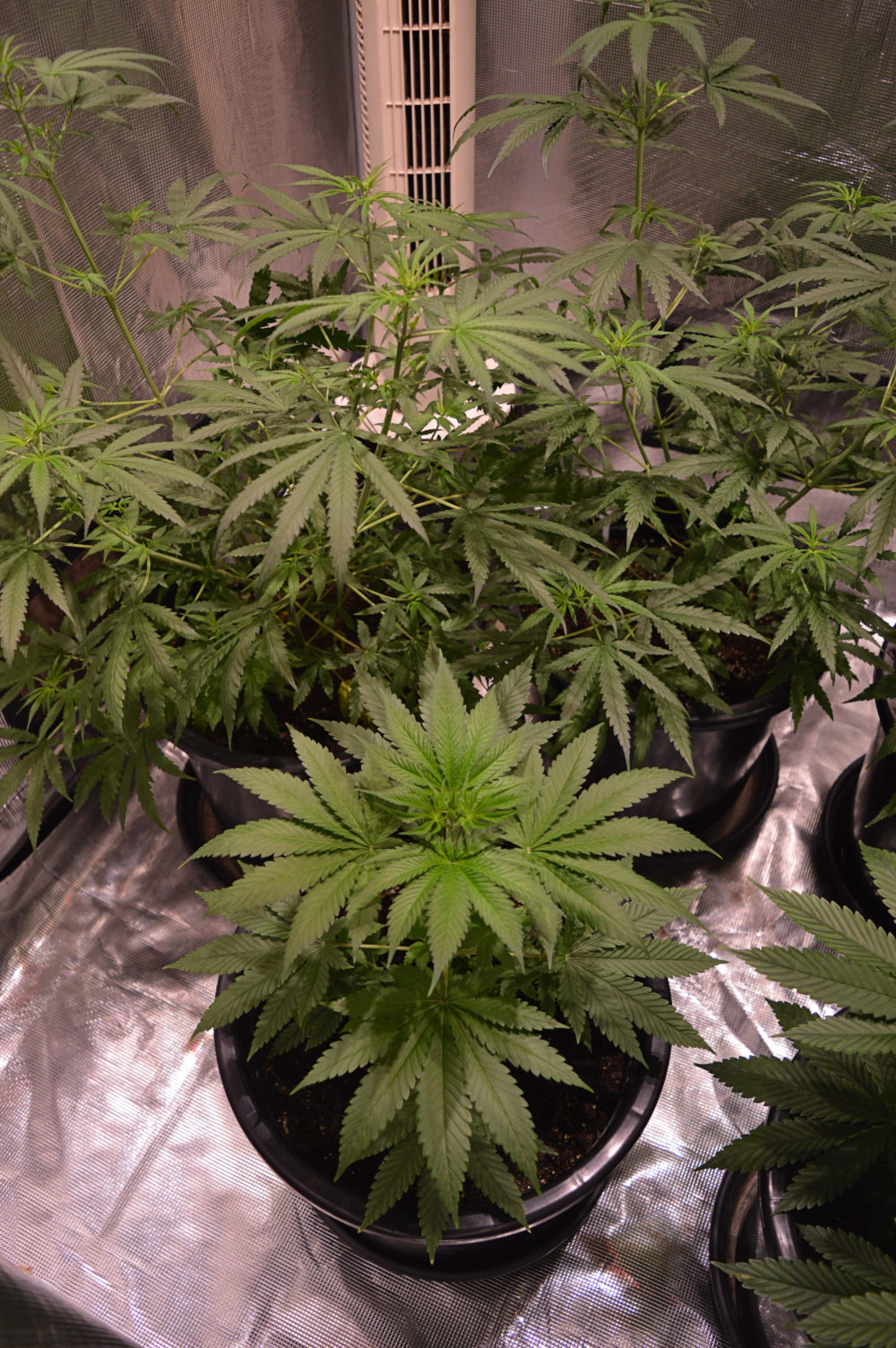 Ik heb de dames sinds 2 augustus op een 12/12 lichtregime gezet. Dat houdt in dat het 12 uur licht is en 12 uur donker in mijn kweektent. De planten kregen eerst 18 uur licht, maar door ze 6 uur minder licht te geven forceer ik de bloeifase. De planten denken nu namelijk dat de winter in aantocht is en daarom gaan ze bloeien.
