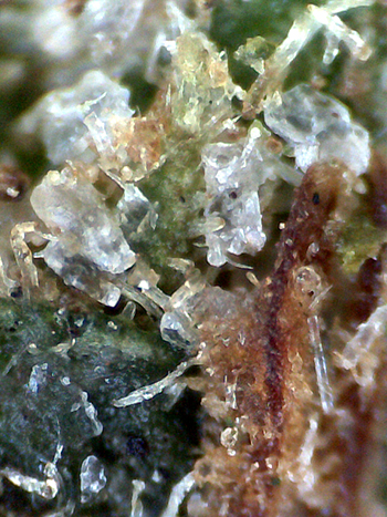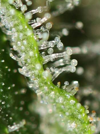 De grootste aanwijzing voor goede wiet, is de aanwezigheid van veel trichomen. Veel trichomen betekent veel smaak en vooral veel THC. Hoe meer van de kleine harsdruppeltjes er op de wiet zitten, hoe beter de wiet. Maar kijk uit, want er zijn ook wel suikerkristallen of haarlak op wiet aangetroffen. De kristallen horen eruit te zien als minuscuul kleine ronde bolletjes en zeker niet als een overdreven dikke laag aan elkaar geklonterde substantie. Onder een kleine zakmicroscoop kun je ze goed beoordelen.