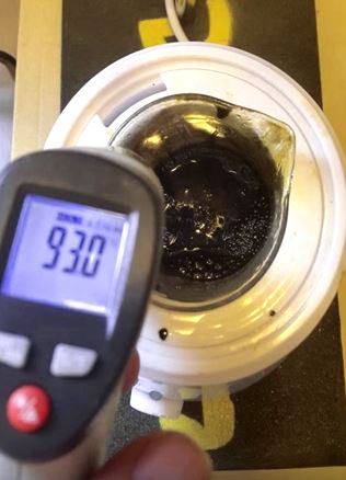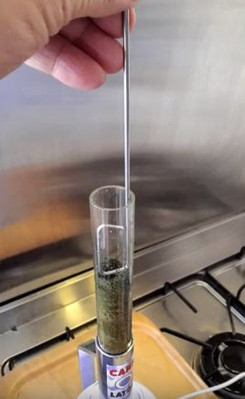 Zet de babyfles verwarmer op vol vermogen aan, de temperatuur ervan is dan ongeveer 100 graden. De alcohol gaat verdampen dus doe dit buiten of onder een afzuigkap en zorg ervoor dat er geen vuur vonk of vlammen in de buurt zijn. Omdat alcohol al bij 78 graden verdampt zal de vloeistof tijdens het verdampen niet boven de 80 graden uitkomen. Je kunt dit meten met de meegeleverde thermometer. Pas wanneer alle alcohol is verdampt gaat water verdampen en loopt de temperatuur op tot 100 graden. Om er zeker van te zijn dat alle alcohol eruit is, kun je een paar extra druppels water toevoegen.
