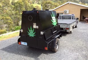 Maar de activisten in Tasmanië zijn niet heel rijk, dus gingen de mensen van Medicinal Cannabis and Hemp Tasmania virtueel de boer op. Door geld in te zamelen via GoFundMe – een van de vele crowdfunding sites die je tegenwoordig hebt voor als de bank geen geld geeft – konden Andrew Irving en zijn strijdmakkers dus niet 1 maar liefst 2 trailers kopen.